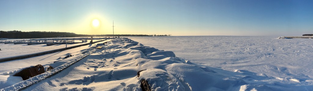 Well, OK- the view from our marina here at Egg Harbor still looks pretty wintery. The bay of Green Bay is frozen over and hundreds of ice fishing shacks dot the lower bay. Yet, the temps did get above freezing today and pretty mild weather (for February) has set in. So it’s a good time to start planning spring work on the Quickstep. My list? I’ve got a nagging electrical issue to track down and the coamings need stripping and varnishing. Bottom paint was new last year, so at least that won’t be part of the routine this spring. When it’s warm enough, we’ll drag her from the shed and get her ready for another season. Can hardly wait.