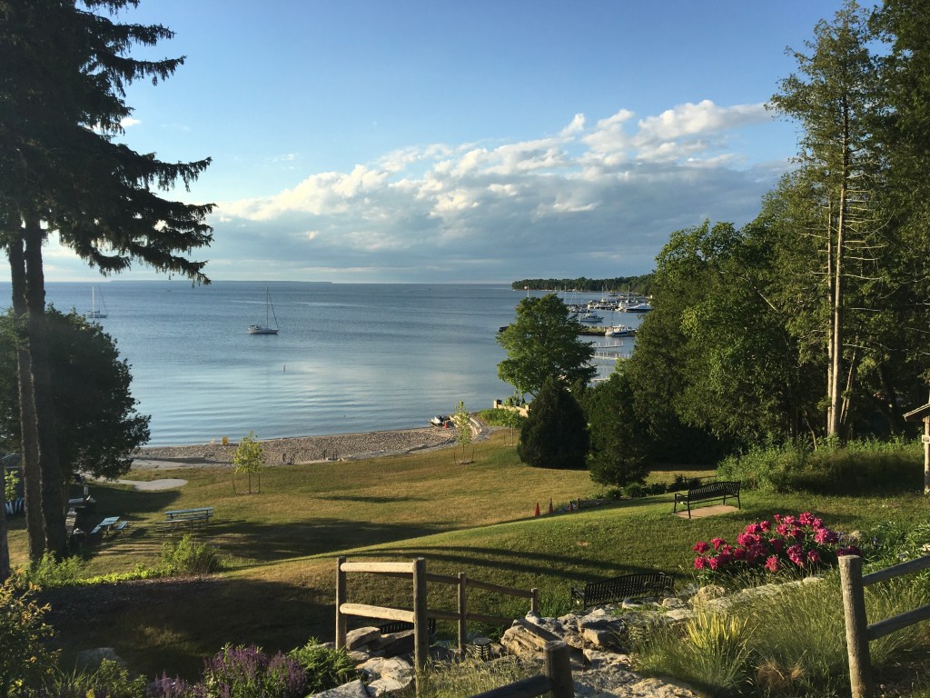 Enough of the pictures of grey skies! Here is Egg Harbor on the bay of Green Bay. This is a view to the north and in the distance you can see Chambers Island. These waters are our daysailing paradise and we’ve already enjoyed a couple of great sails. Egg Harbor is also a popular stop for visiting sailors who take advantage of a secure anchorage with perfect access to the village and all it has to offer. This will be the spot for our Fourth of July fireworks. Can’t wait!