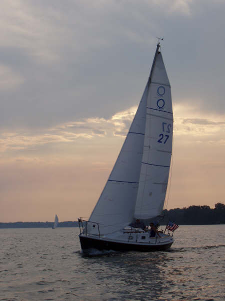 Our Quickstep 21 was designed by Michael Price for the late Gary Lannigan who owned Quickstep Sailboats of Bristol, RI. The boats were originally equipped with Thurston or Hood sails and were available with a variety of fine options from roller furling, to a cruising spinnaker, to teak cockpit gratings. They were essentially semi-custom production sailboats. Quickstep offered the Q21 with a fine heavy Triad trailer for owners who wanted them. Mr. Lannigan personally introduced the boats to customers at a number of boat shows. In 1989, we talked with him and visited the boat at shows in both Racine, WI and Michigan City, IN, and then placed an order for hull 27.